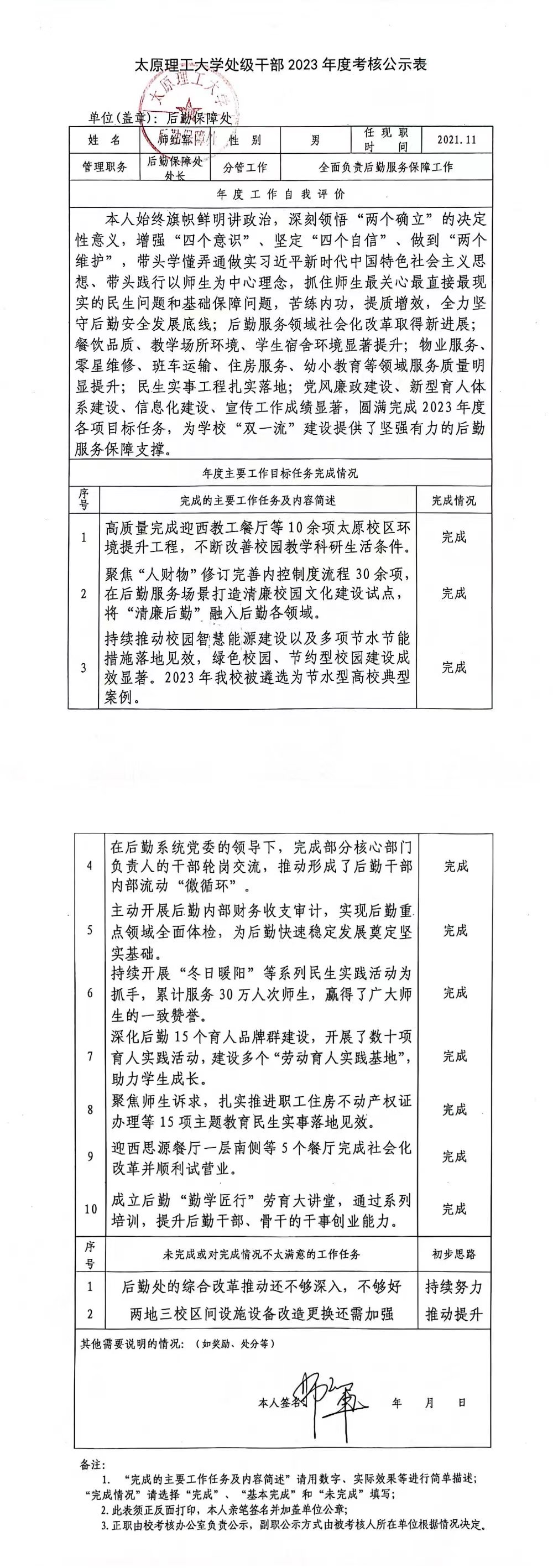 师红军同志2023年度考核公示表