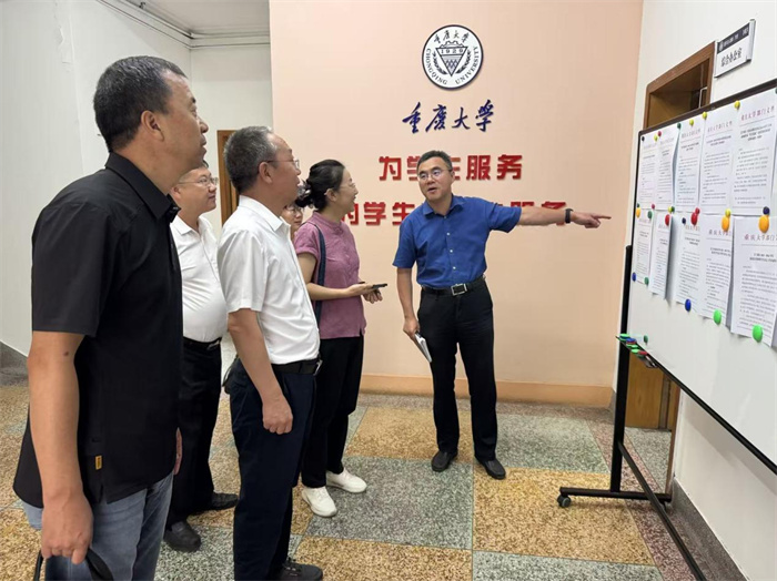 25日,调研团队来到重庆大学沙坪坝校区,重点汲取该校关于“三全育人”改革、深化产教融合促就业的成功经验。重庆大学党委常委、副校长饶劲松带队陪同调研。在座谈会上,双方就“五位一体”一站式学生社区教育模式、学生工作考评荣誉体系建设、数字赋能学生管理等创新举措深入探讨;并围绕学校“十五五”发展定位、“成渝双圈”校地合作路径、学生就业力全过程培养、后勤服务保障运行模式改革路径、医学学科建设等议题交换思路。期间,调研团队还实地参观了重庆大学校史馆、学生管理中心、建筑节能管理中心及校园环境,直观感受该校办学底蕴与精细化管理成效。