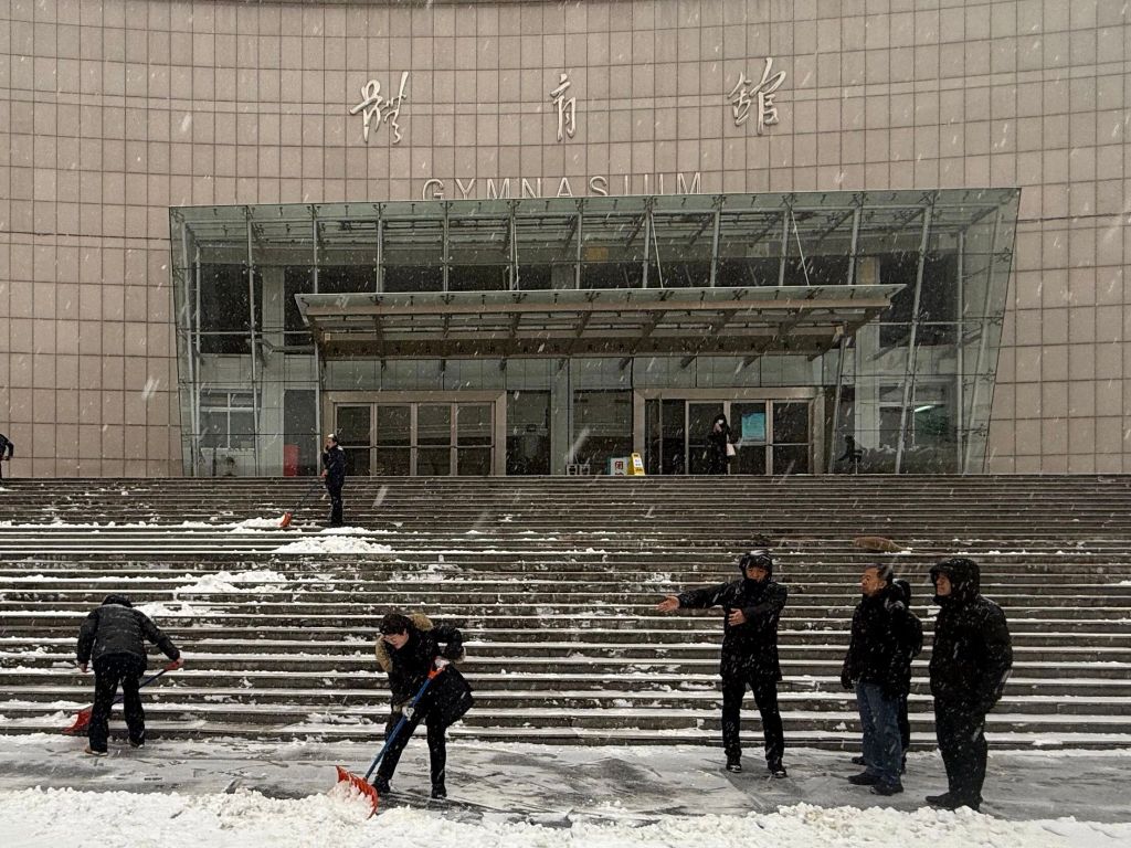 “早上出门还担心路滑不好走,没想到后勤的师傅们已经把主干道扫得干干净净了,太贴心了!”一位匆匆赶往教室的同学说道。截至当日上午10时,校园内主要通行道路、教学楼出入口、食堂周边等重点区域的积雪已全部清扫完毕,无结冰打滑现象,为师生正常教学、工作和生活提供了坚实保障。