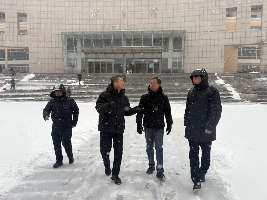 扫雪作业期间,后勤保障部主要负责同志深入现场督导,实地查看积雪清理进度,叮嘱工作人员严守作业安全底线,科学调配人力物力,优先保障主次干道、教学楼、食堂、宿舍等关键通行路段畅通;同时强调要规范设置防滑警示标识,加密重点区域巡查频次,做到清理无死角、巡查无盲区,切实保障师生出行安全和校园正常运转。