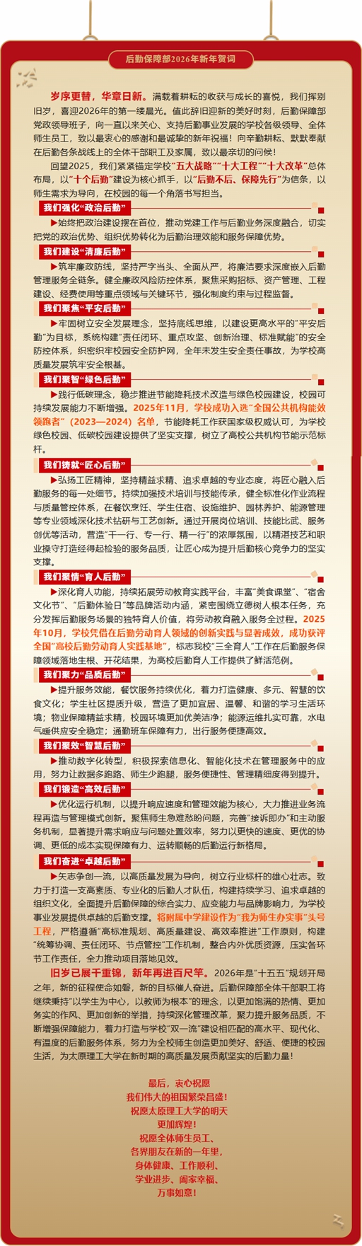 太原理工大学后勤保障处新春祝福