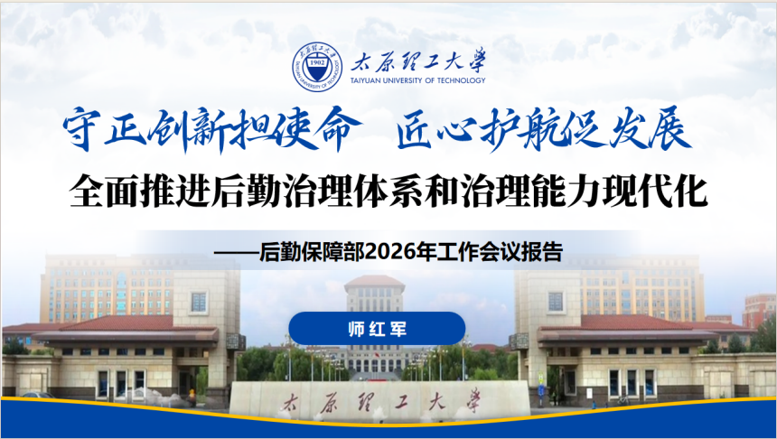 会议指出,2025年后勤保障部坚持以习近平新时代中国特色社会主义思想为指导,紧扣学校中心大局,在学校党政的坚强领导与各部门通力支持下,坚守育人初心、强化政治担当、压实工作责任,圆满完成全校5万余名师生服务保障任务。太原校区基础设施提档升级,后勤机构改革、干部队伍建设、能源管理改革、劳动育人等工作扎实推进、成效显著;学校获评山西省唯一全国公共机构能效领跑者、高起点共建附属中学两项标志性成果,成功入选学校年度30项高光成绩单,后勤工作亮点纷呈、实绩斐然。